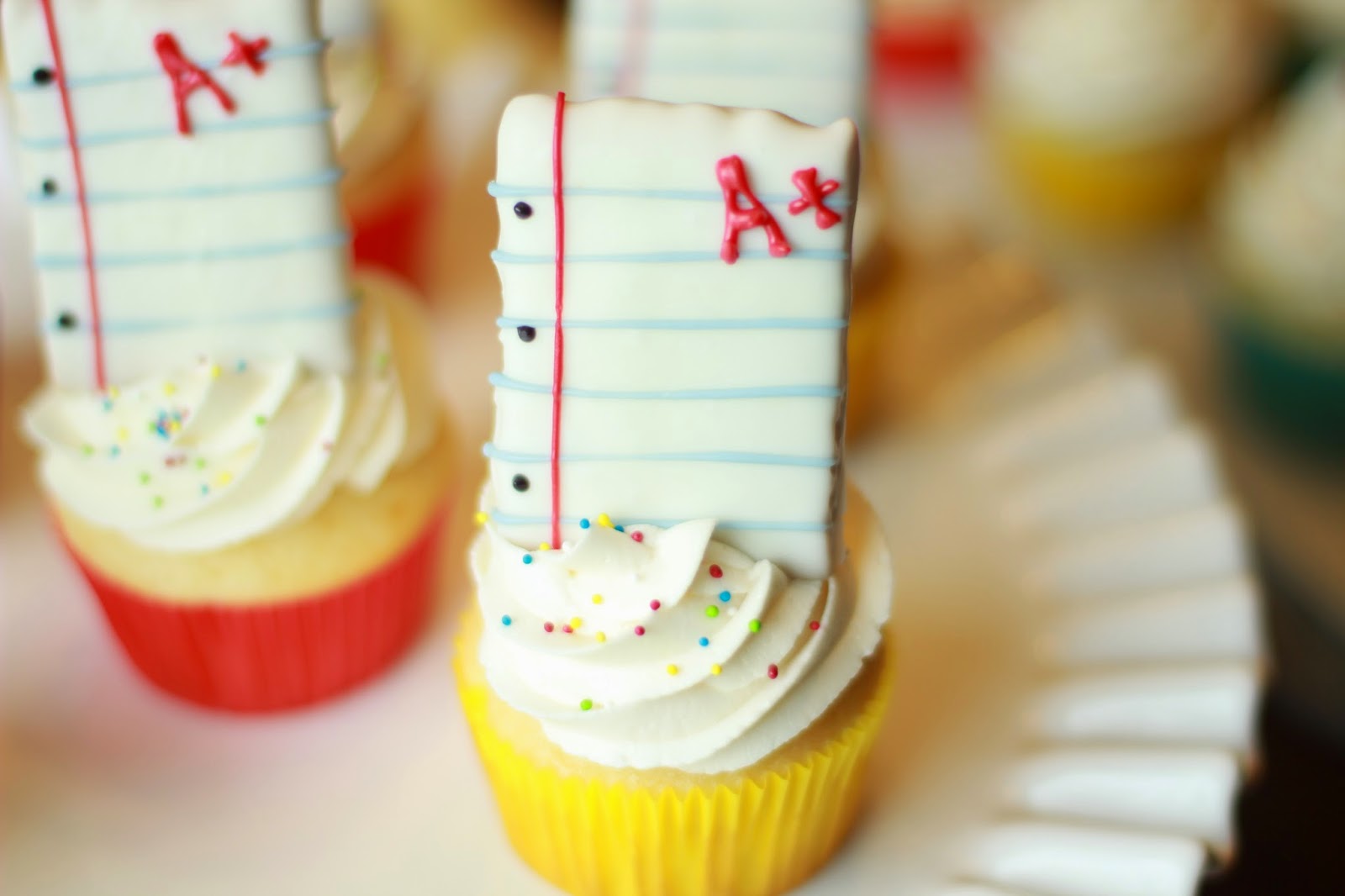 This makes enough frosting for 24 cupcakes, decorated as shown. I garnished them